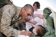 January 25, 2009 — Cpl. Venancio Proa, a vehicle mechanic with Headquarters and Service Company, 1st Marine Logistics Group, greets his daughter Serenity while his wife, Elizabeth, watches during a homecoming ceremony at Camp Pendleton, Jan. 25. Proa returned home along with eighty Marines and sailors following a seven month deployment to Iraq including a group who MORE